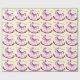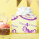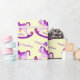 Papier d'emballage d'anniversaire violet rocking cheval design sur un arrière - plan jaune citron. Personnalisez ce quatrième anniversaire avec votre propre nom. Lit actuellement Happy 4th Birthday Maddie. Parfait pour envelopper un cadeau d'anniversaire spécial. Uniquement peint en aquarelle et dessiné par Sarah Trett.