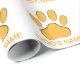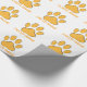 Empreintes de chien orange de dessin animé. Papier d'emballage customisé pour les cadeaux de chien.