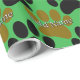 Empreinte de patte de chien de dessin en noir et marron. Roulettes de papier d'emballage cadeau personnalisées. Version arrière - plan verte pour Noël. Modifiez le nom pour customiser. Bon pour la décoration de fête. Idée d'enveloppement cadeau pour amoureux de les chiens.