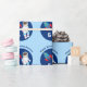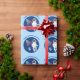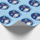 Cool papier d'emballage spatial personnalisable pour un enfant qui lance des roquettes sur des navires et des planètes. Ajoutez le nom et l'âge de votre enfant en bleu et blanc pour personnaliser votre cadeau pour un garçon qui aime les astronautes flottant à côté des vaisseaux spatiaux.