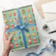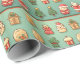 Enveloppez vos cadeaux dans une joie festive avec notre délicieux papier cadeau orné de jolis biscuits de Noël, avec le Père Noël, Mme Claus, des maisons, des arbres avec des étoiles, et des délicieuses friandises, le tout contre un arrière - plan vert vibrant.