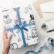Célébrez le couple heureux avec un cadeau enveloppé dans la joie pure! Ce papier d'emballage charmant présente un délicieux éventail d'éléments mariages dessinés à la main - des anneaux pétillants au champagne festif en passant par les gâteaux mariages sucrés et les tourterelles. Les contours noirs simples sur un arrière - plan blanc immaculé lui confèrent une atmosphère fraîche et moderne, à la fois élégante et douce. Parfait pour les fêtes de fiançailles, les cadeaux de mariage ou les anniversaires, cet article ajoute une touche de fantaisie sincère à tout cadeau, ce qui le rend spécial.