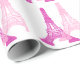 Papier d'emballage rose et magenta clair et ludique pour les amoureux de Paris. La tour Eiffel aux tons colorés est fantasque et amusante pour de nombreuses occasions.