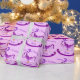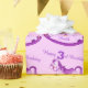 Conception pourpre d'art de cheval de basculage de papier d'emballage d'anniversaire sur un arrière - plan lilas. Personnalisez ce troisième document d'anniversaire avec votre propre choix du nom. Lit actuellement la 3ème foi heureuse d'anniversaire. Perfectionnez pour envelopper un cadeau d'anniversaire spécial. Uniquement peint dans l'aquarelle et conçu par Sarah Trett.