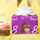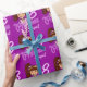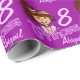 Papier d'emballage d'anniversaire dans le pourpre avec une fille mignonne de princesse de cheveux foncés portant une conception de diadème. Personnalisez ce document d'anniversaire de girlie avec votre propres nom et âge. Lit actuellement princesse Abigaïl 8. parfaite pour envelopper un huitième cadeau d'anniversaire spécial. Uniquement conçu par Sarah Trett.