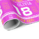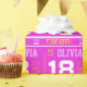 Le texte moderne et la conception sportive de rayure ont personnalisé le papier d'emballage cadeau de filles d'anniversaire d'âge, comportant la typographie graphique et votre propre six noms de lettre dans pourpre, blanc lumineux, jaune et rose. Personnalisez avec votre couleur d'arrière - plan et posséder le nom (notez svp non tous les noms adaptera en raison de la nature de la police) et l'âge, lit actuellement Olivia 18, d'autres longueurs nommées sont disponibles, si vous avez besoin d'aide svp me contactez, heureux de signaler un pour votre nom. Une grande manière de donner un contact personnalisé aux cadeaux d'anniversaire. Uniquement conçu par Sarah Trett.