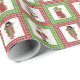 Un papier d'emballage de Noël mignon et lunatique de pays avec les tuiles alternatives dans les motifs rouges et verts de fête de plaid. Dans chaque tuile est une illustration orientée de petit Noël adorable : un ange, le père noël, un ours de nounours dans un bas de Noël, et un arbre de Noël.
