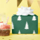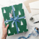 Papier d'emballage cadeau de Noël orné d'un épinette blanche dans un motif à répétition sur un arrière - plan de forêt verte ombragée.