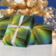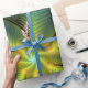 Papier Cadeau Etoile Abstraite, Bleu brillant Vert Or Fractal Ar