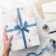 Papier Cadeau Etoiles d'or, lune et nuages roses fluides