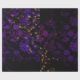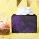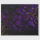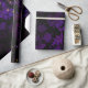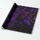 Papier d'emballage noir et violet damassé avec étoiles dorées lumineuses.