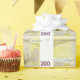 Papier d'emballage qui ressemble à une feuille de 200 euro factures.
