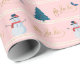 Moderne et festif fa la blush rose, scènes hivernales rayées design papier d'emballage. Simple aquarelle blanche bande de brosse avec un style de tourbillon d'or faux et dessin festif d'arbre de Noël et de bonhomme de neige. La couleur Arrière - plan peut être changée selon vos préférences. Oeuvre artisanale originale de Moodthology Papery.