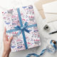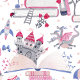 Papier d'emballage enchanté avec pile de livres, livre ouvert, château, dragon, et de mignonnes créatures de conte de fées. Parfait pour envelopper les cadeaux pour les filles et les garçons pour déplier leur imagination.