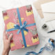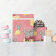 La première feuille est très mignonne et très cheesy motif de famille de la Souris, maman, papa, fils et fille chacun avec leur tranche de fromage, sur la texture rouge arrière - plan correspondant aux tenues de brevets. Illustration de Suki’s, tous droits réservés.