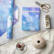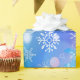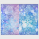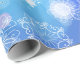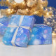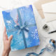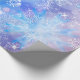 Un joli papier d'emballage présente un design d'imaginaire de flocon de neige gelé dans les tons bleu, violet et blanc.