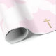Papier Cadeau Faux or croix blanc cercle motif baptême rose