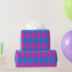 Un rouleau chic de papier d'emballage, avec un motif imitation patchwork de formes diamant, un bleu clair, des points bleus sur un arrière - plan Magenta.