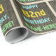 Cette conception amusante de papier d'emballage sur le thème de l'anniversaire comporte un message comme "HAPPY 82nd BIRTHDAY, NAME-HERE !", où le nom peut être personnalisé. L'arrière - plan présente un motif rustique, brun, imitation bois de grain. Le texte du message personnalisable est composé de couleurs comme le bleu, le jaune et le vert, et il a un aspect inspiré de celui du lettrage peint et recouvert de pochoirs. Un papier comme celui-ci pourrait peut-être être utilisé pour envelopper les cadeaux d'anniversaire donnés à quelqu'un qui célèbre son quatre-vingt-deuxième anniversaire. [~Z0000293]