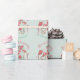Ce papier d'emballage fantaisiste de Noël présente un thème boisé enchanté sur un arrière - plan vert menthe. L'image d'une jolie fée et d'un papillon sont représentés parmi les champignons et le feuillage forestier. Deux petits sucres de canne sont placés de chaque côté, et des flocons de parties scintillant roses tombent. Un accueil "joyeux Noël" est imprimé en haut dans une police de caractères élégante. Un exemple de nom de famille est imprimé en bas, que vous pouvez personnaliser pour inclure votre propre nom ou texte personnalisé.