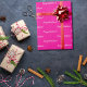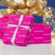 Un papier d'emballage grileux et tendance. Un arrière - plan rose vif, texte blanc : Félicitations !