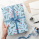 Ferme campagne pastel bleu clair, rouge et vert foncé feuillage, couronne, feuille, rustique motif joli papier d'emballage cadeau de vacances. Idéal pour Noël et les fêtes.