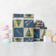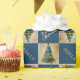 Papier Cadeau Festif Arbre de Noël Aquarelle Bleu Vacances