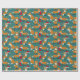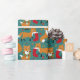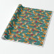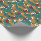Envelopper les cadeaux de Noël et répandre la joie des fêtes avec ce papier d'emballage mignon qui présente des illustrations d'adorables renards festifs portant des chapeaux de Père Noël et des couronnes de Noël et portant des ornements et des bas de Noël. Les illustrations sont dressées contre un arrière - plan turquoise foncé et agrémentées de feuilles saints et de baies, d'ornements d'arbres et de points de flocons de neige blancs.