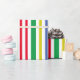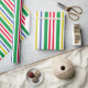 Des rayures verticales vertes, rouges, dorées et bleues sur un arrière - plan blanc créent un beau papier d'emballage festif pour vos cadeaux de vacances !
