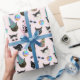 Un motif doux et drôle avec des chats adorables et à l'aspect cool portant des casquettes cônes colorés de fête d'anniversaire et des lunettes de soleil pour enfants. Elle est entourée de ballons de plage et comprend des chats calico, des harlequins et des tuxedo. Le arrière - plan est rose rose pâle, adapté aux filles et aux adolescents. Ce superbe papier d'emballage cadeau sera le point fort de la boîte cadeau.