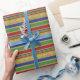 Papier d'emballage de vacances rayé or élégant et festif.