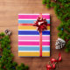 Colorful Stripe Motif Vivid Anniversaire Papier d'enveloppement de fête. Design moderne et lumineux, rayures bleues, jaunes et roses. Idéal pour une fête d'anniversaire pour enfants ou adultes, pique-nique, Pâques,...