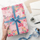 Papier d'enveloppement de fête d'anniversaire Rustique d'animal de ferme de porc. Adorable cochon rose rustique pays motif agricole floral. www.SamAnnDesigns.com Anniversaire papier d'enveloppement. Fournitures de fête d'anniversaire pour enfants sur le thème de la ferme. www.SamAnnDesigns.com