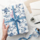 Papier Cadeau Fête de Mariage Fleur Bleu et Blanc