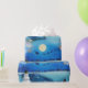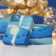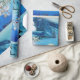 Paysage hivernal turquoise, foncé et bleu clair avec rennes, soleil pâle, décor de Noël avec décor de Noël de mariée géométrique or
