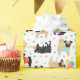 Cute birthday party Pug dogs with black and tan coats dressed in cute birthday outfits with balloons, cake and confeti pattern.