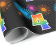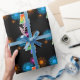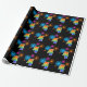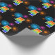 Ce design de papier d'emballage amusant et vibrant présente un motif coloré inspiré de feux d'artifice de célébration, ainsi que le chiffre "4" ayant un motif de dégradé multicolore semblable à un arc-en-ciel, sur un fond de couleur noire. Du papier d'emballage comme celui-ci pourrait éventuellement être utilisé pour emballer des cadeaux ou des présents offerts pour le quatrième anniversaire de quelqu'un, ou peut-être pour le quatrième anniversaire de mariage d'un couple, ou un autre événement marquant un 4ème événement.