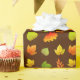Feuilles d'automne sur papier d'emballage brun foncé.