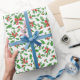 Papier Cadeau Feuilles et baies de Noël rouges et verts