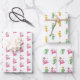 Emballage papier 3 feuilles avec un jaune vert et un serpent rose avec un oiseau sur la tête