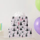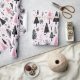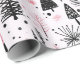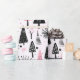 Ce motif de Noël moderne et ludique présente un agencement fantaisiste d'arbres stylisés et de flocons de neige abstraits en noir et rose sur un arrière - plan rose pastel doux. Le design combine des formes géométriques simples et des éléments dessinés à la main pour créer une esthétique à la mode et girly