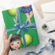 Une fille pom-pom girl aux pompons verts. Cette conception semble vraiment efficace sur ces papiers d'enveloppement