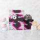 Papier d'emballage d'anniversaire dans un rose chaud et noir mignon ajouter votre propre design à motif photographique. Personnalisez ce papier d'anniversaire girlie avec votre propre photo amusante, nom et âge. A l'heure actuelle, on peut lire Happy Birthday Maisie 16. Une façon très amusante d'envelopper un cadeau spécial de 16e anniversaire pour une fille, un ami ou un parent. Uniquement conçu par Sarah Trett.