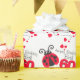Papier d'emballage d'anniversaire dans un blanc, rouge et noir filles volant coccinelle / coccinelle et conception de coeurs. Personnalisez ce papier d'anniversaire girlie avec votre propre nom et l'âge double figure. Lit actuellement Joyeux anniversaire Beth 60 aujourd'hui. Parfait pour envelopper un cadeau spécial de 60e anniversaire. Uniquement conçu par Sarah Trett pour www.mylittleeden.com