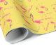 Papier à envelopper montré avec une impression de Flamants roses rose vif sur la couleur arrière - plan de votre choix, montré est jaune vif ensoleillé, avec leurs casquettes de fête d'anniversaire sur. Texte aléatoire de "Joyeux anniversaire. Customisez ce papier ou achetez-le tel quel.