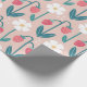 Un charmant motif aux fleurs blanches délicates, aux fraises rouges vibrantes et aux feuilles verdoyants, dressé contre un arrière - plan moelleux. L'agencement symétrique crée un design ludique mais élégant.