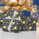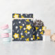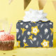 Fleurs et feuilles rétro en blanc, gris & ocre jaune sur un arrière - plan bleu minuit. La couleur Arrière - plan peut être modifiée.