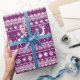 Papier Cadeau Fleur de rennes violets et blancs Noël moderne