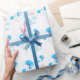 Beau lave linge linge lustré fleur sauvage en bleu ciel brillant, blanc et gris art floral mariage marié et grooms nom papier d'emballage. Customisez avec votre propre nom et nom de mariée et de salutation. Peinture et design par Sarah Trett.