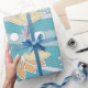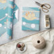 Papier Cadeau Fleurs de Lotus Jaunes sur les rayures Cyanes